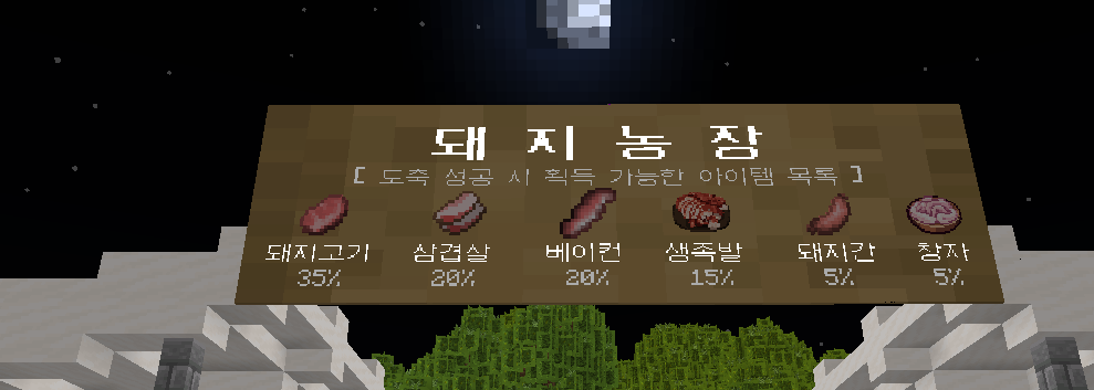 두번째로 돼지농장이다 돼지고기 35% 삽겹살 20% 베이컨20% 생족발 15% 돼지간5% 창자5%